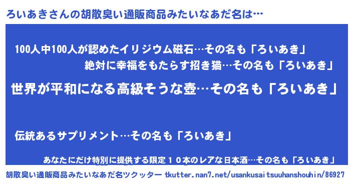 | 肩書あだ名 | 『ろいあき大統領』『ろいあき少将』 |