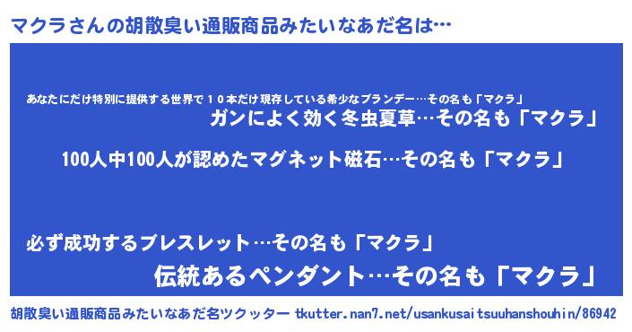 | ヘコむあだ名 | 『マクお』『マクもー』『なまこ酢』 |