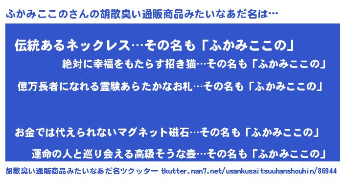 | ヘコむあだ名 | 『ふかっふぃ~』『ふか太郎』 |