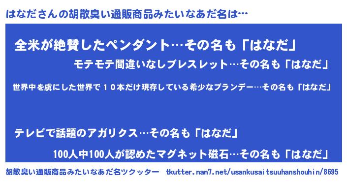 | ヘコむあだ名 | 『はなっぺ』『はなもー』『つくし』 |