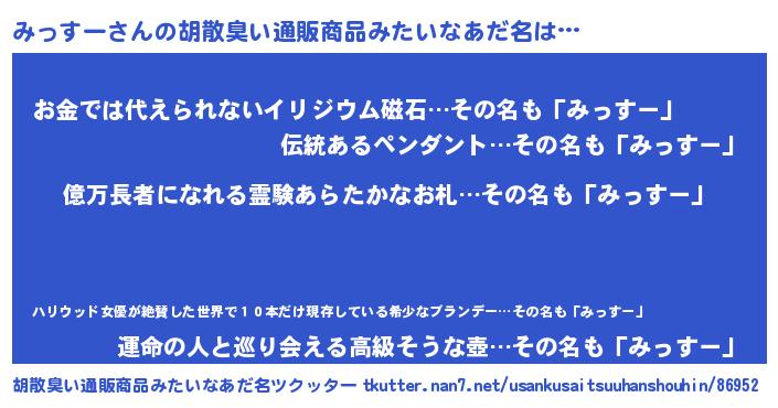 | ヘコむあだ名 | 『みっもー』『なまこ酢』『みっっ子』 |