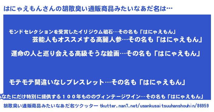 | ポケモン風あだ名 | 『ハニャダネ』『ハックウザ』 |