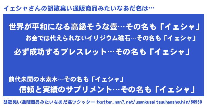 | ヒーロー風カッコイイあだ名 | 『スーパーイェシャ』『幻影騎士イェ』 |