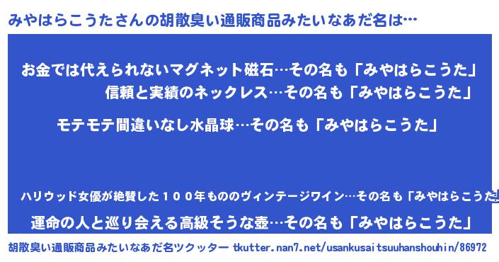 | ヘコむあだ名 | 『みやにゅー』『なまこ酢』 |