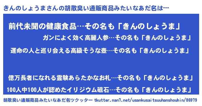 | 意味不明あだ名 | 『きんのしょうまフォーエバー』 |