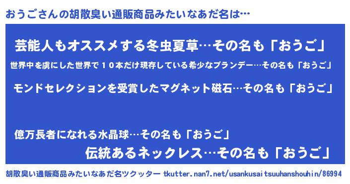 | 意味不明あだ名 | 『眠気覚ましガムおうご味』『自称おうご』 |
