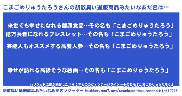 | 意味不明あだ名 | 『自称こまごめりゅうたろう』 |