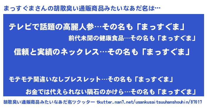 | ヘコむあだ名 | 『まっっぺ』『まっすぐま(小並感)』 |