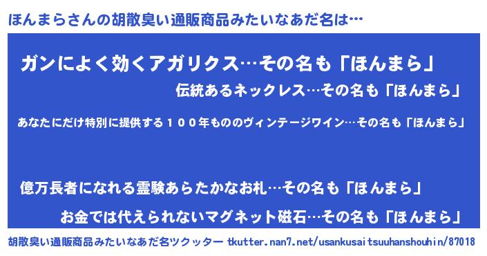 | 男性向けラノベタイトル風あだ名 | 『この素晴らしい世界にほんまらを!』 |