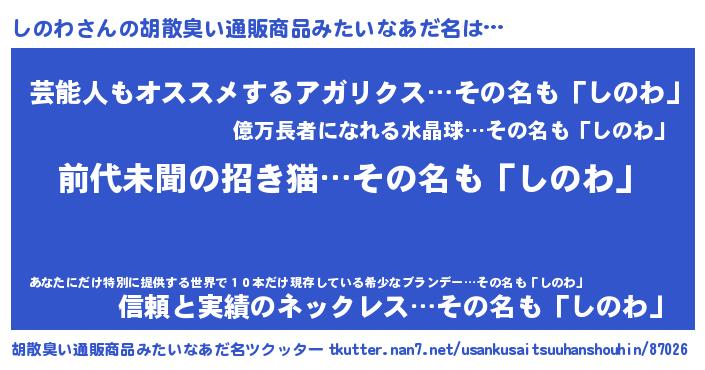 | ヘコむあだ名 | 『しのわ(笑)』『しのっぺ』 |