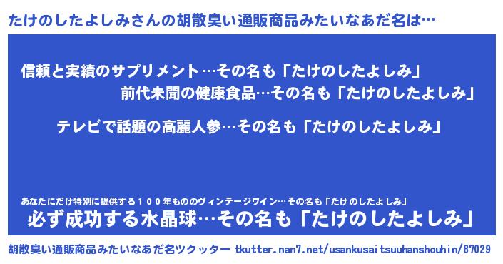 | 肩書あだ名 | 『たけのしたよしみ閣下』 |
