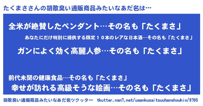 | 意味不明あだ名 | 『自称たくまさ』『たくまさフォーエバー』 |
