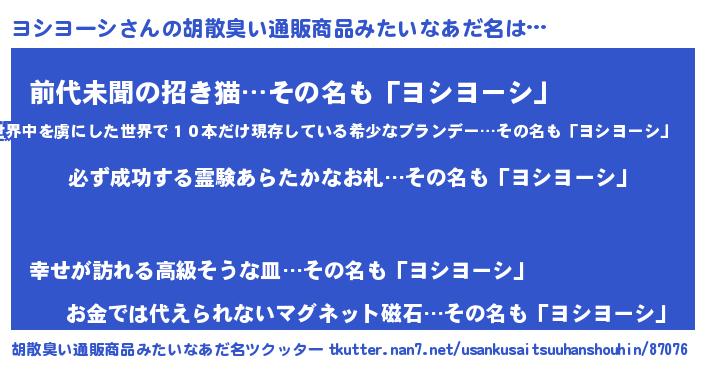 | ヘコむあだ名 | 『ヨシっふぃ~』『ヨシヨーシ(小並感)』 |