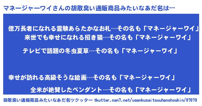 | ヒーロー風カッコイイあだ名 | 『サイバー戦士マネージャーワイ』 |
