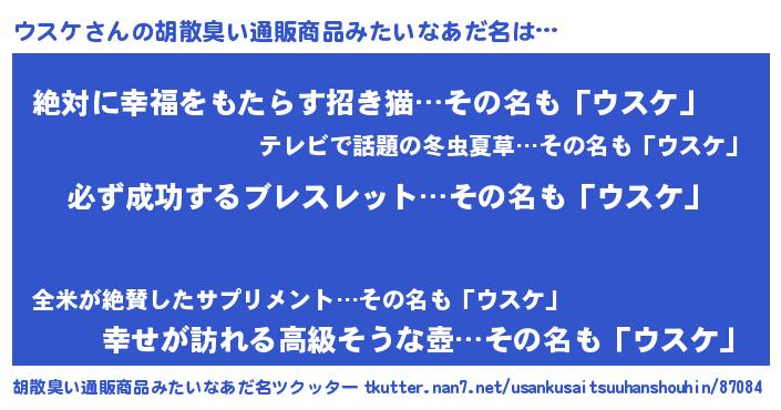 | ヘコむあだ名 | 『ウスふぇ~』『ウスケ(笑)』 |