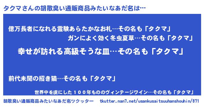 | 自動車の名前っぽいあだ名 | 『タクア』『タクティマ』『ポタシェ』 |