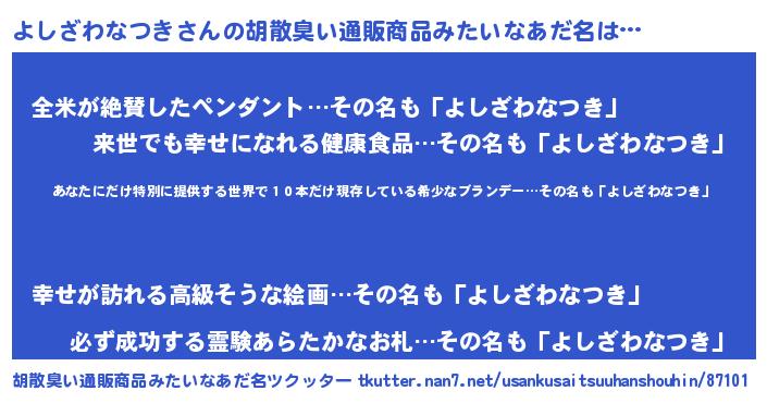| 意味不明あだ名 | 『住所不定無職よしざわなつき(81歳)』 |