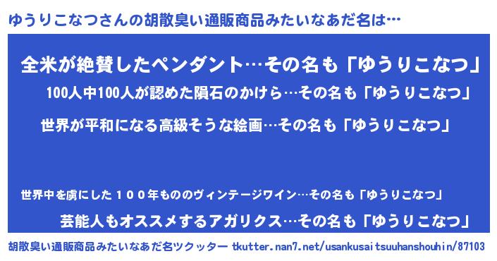 | 男性向けラノベタイトル風あだ名 | 『転生したらゆうりこなつだった件』 |