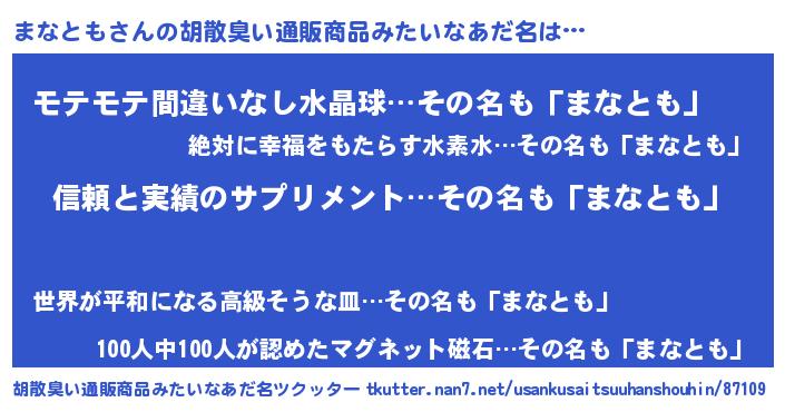 | 男性向けラノベタイトル風あだ名 | 『マナトモスレイヤー』『まなともの憂鬱』 |