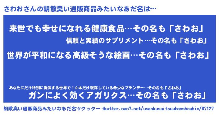 | 意味不明あだ名 | 『なめこ科さわお属』『永久保存さわお』 |