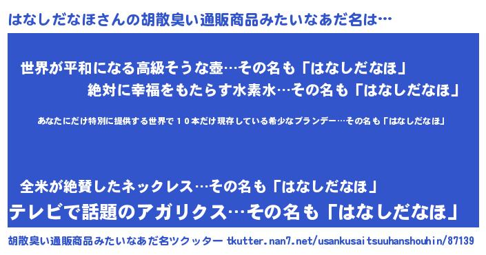 | ヘコむあだ名 | 『酢こんぶ』『はなしだなほ(笑)』 |
