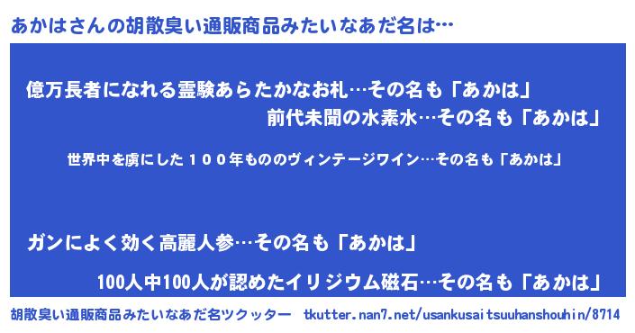 | 意味不明あだ名 | 『住所不定無職あかは(1歳)』『自称あかは』 |