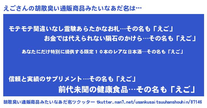 | 意味不明あだ名 | 『住所不定無職えご(39歳)』『ペロリンえご』 |