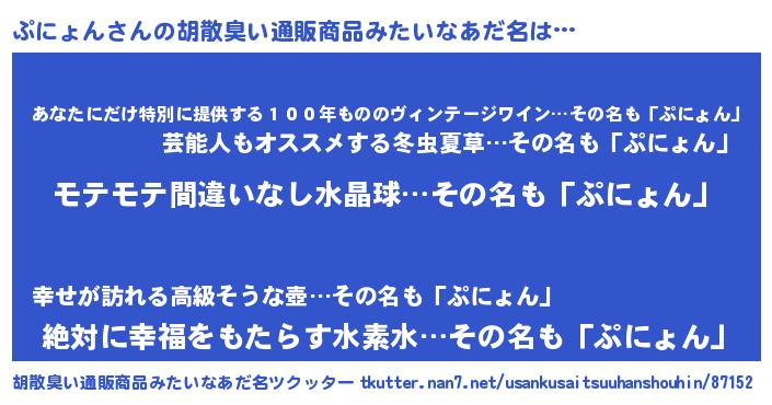 | ヘコむあだ名 | 『ぷにふぇ~』『ぷにょん(小並感)』 |