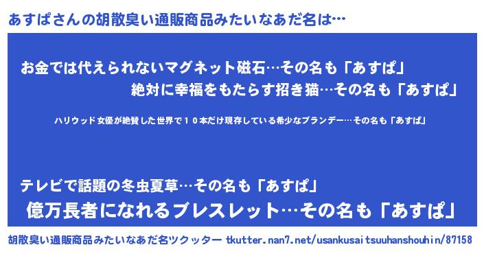 | 欧米人風あだ名 | 『ダレノガレあすぱ』『ダニエルあすぱ』 |