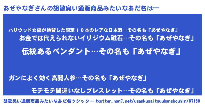 | ヘコむあだ名 | 『あぜぷりん』『あぜにゅー』『豆乳』 |