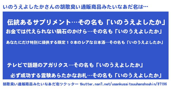 | 意味不明あだ名 | 『住所不定無職いのうえよしたか(53歳)』 |