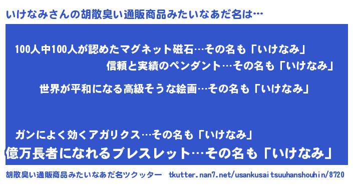 | 肩書あだ名 | 『いけなみ船長』『いけなみ総理大臣』 |