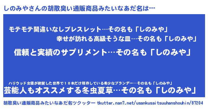 | 意味不明あだ名 | 『とにかく怪しいしのみや』 |