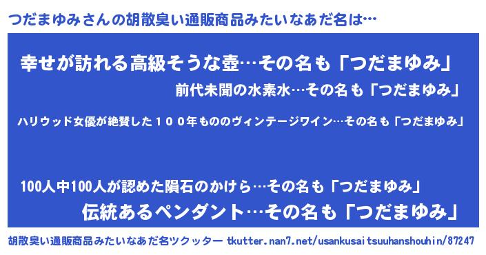 | 肩書あだ名 | 『つだまゆみ教官』『つだまゆみ総理大臣』 |