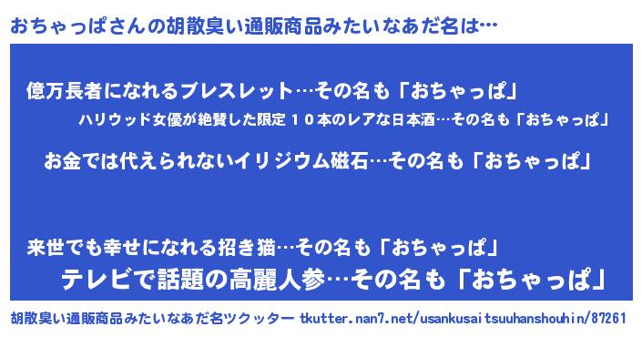 | ヘコむあだ名 | 『おちふぇ~』『おちゃっぱ(笑)』 |