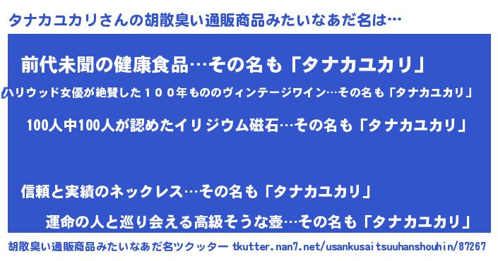 | ヘコむあだ名 | 『タナカユカリ(笑)』『酢こんぶ』 |