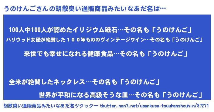| 意味不明あだ名 | 『永久保存うのけんご』 |