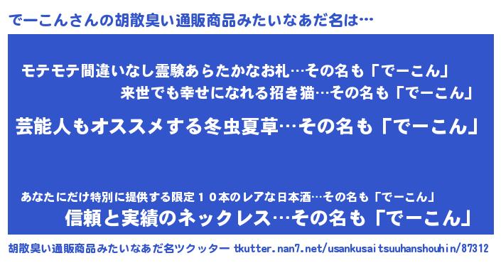 | 意味不明あだ名 | 『自称でーこん』『ペロリンでーこん』 |