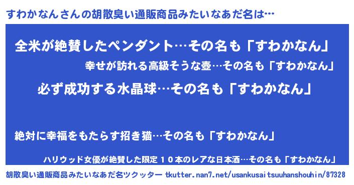 | 男性向けラノベタイトル風あだ名 | 『すわかなんの憂鬱』 |