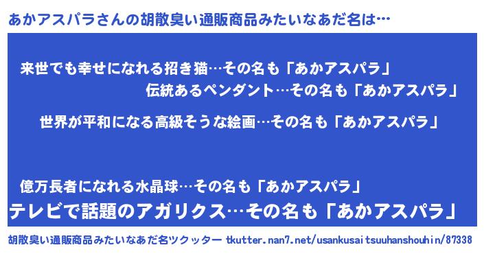 | 意味不明あだ名 | 『あかアスパラフォーエバー』 |