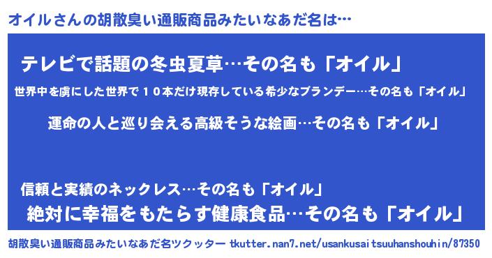 | 女子向けラノベタイトル風あだ名 | 『オイルの婚約者』『闇のオイル』 |