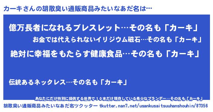 | ヘコむあだ名 | 『カーキ(爆)』『カーにゅー』 |