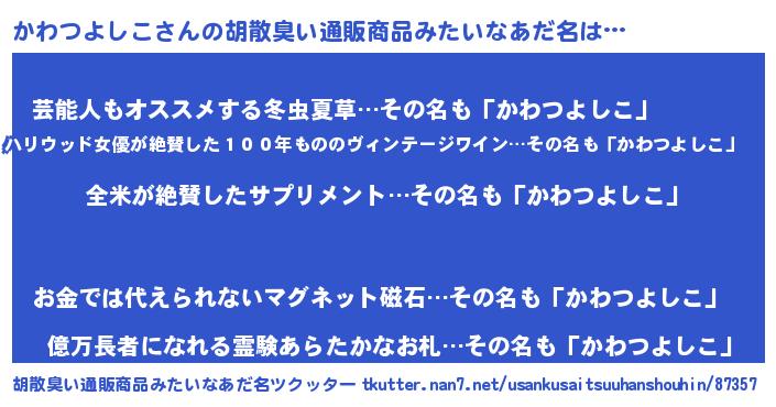 | 肩書あだ名 | 『かわつよしこ団長』『かわつよしこ総統』 |