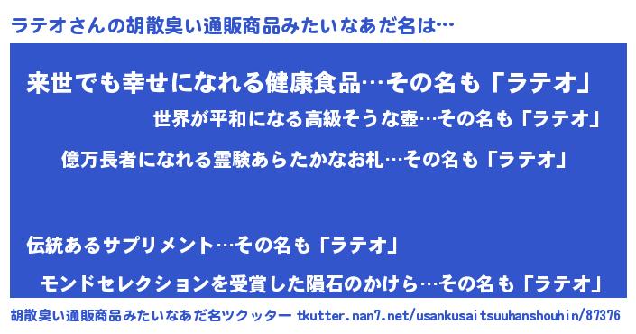 | ヘコむあだ名 | 『ラテっふぃ~』『ラテオ(爆)』 |