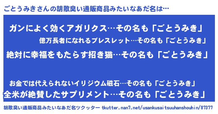 | 意味不明あだ名 | 『永久保存ごとうみき』『自称ごとうみき』 |