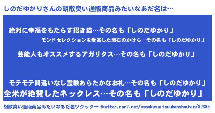 | 意味不明あだ名 | 『自称しのだゆかり』 |