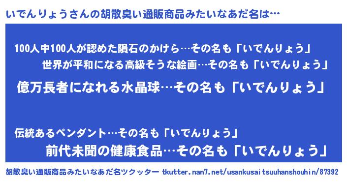 | ヘコむあだ名 | 『いでにゅー』『いでんりょう(遠い目)』 |