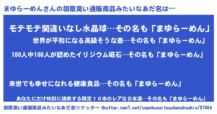 | ヒーロー風カッコイイあだ名 | 『友情の使者まゆらーめん』 |