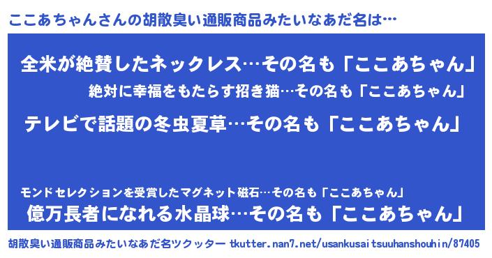 | 意味不明あだ名 | 『自称ここあちゃん』 |
