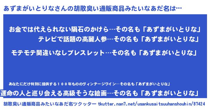 | 欧米人風あだ名 | 『マイケルあずまがいとりな』 |
